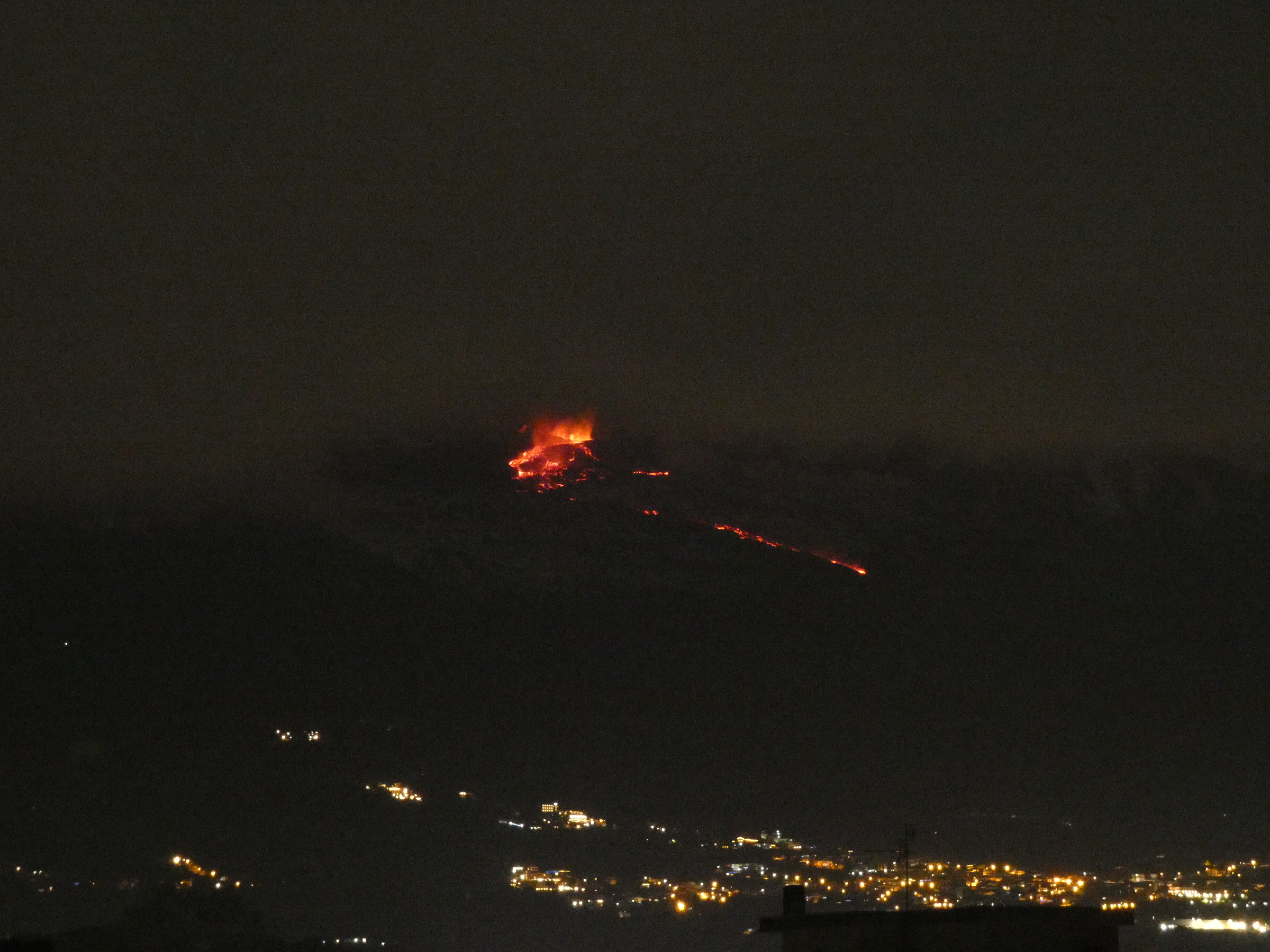 Doch heute, am 1. Januar, kommt die „Neujahrsüberraschung“! Die Erde riss in geringer Höhe auf, und ein gewaltiger Ausbruch begann, der dem spektakulären Ausbruch vom letzten Februar ähnelte: Schnee und Feuer unter einem sternenklaren Winterhimmel! Es klingt wie ein Märchen, ist aber die wunderbare Realität dieses unglaublichen Vulkans, des Ätna, der uns immer wieder aufs Neue überrascht.